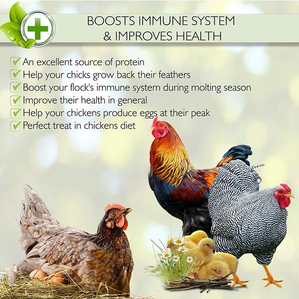 ✅ HIGH IN PROTEIN - Hens need a tremendous amount of protein to lay eggs and also to create new feathers during their molt. Our mealworms are an excellent way to increase your animals' protein intake!