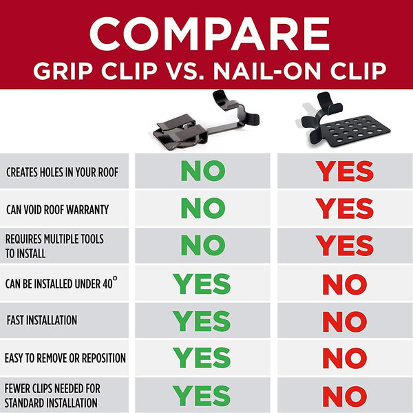 Grip Clips do not loosen and can hold over 25 pounds per clip for a secure long lasting solution