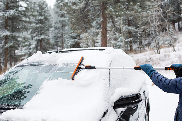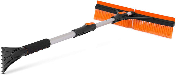 SNOW BROOM & SQUEEGEE: The snow brush is equipped with a dual use snow brush head—the Squeegee & the Broom. The broom bristles gently brush the snow off the car, truck or SUV while the squeegee removes the sludge ice, snow and water from the car